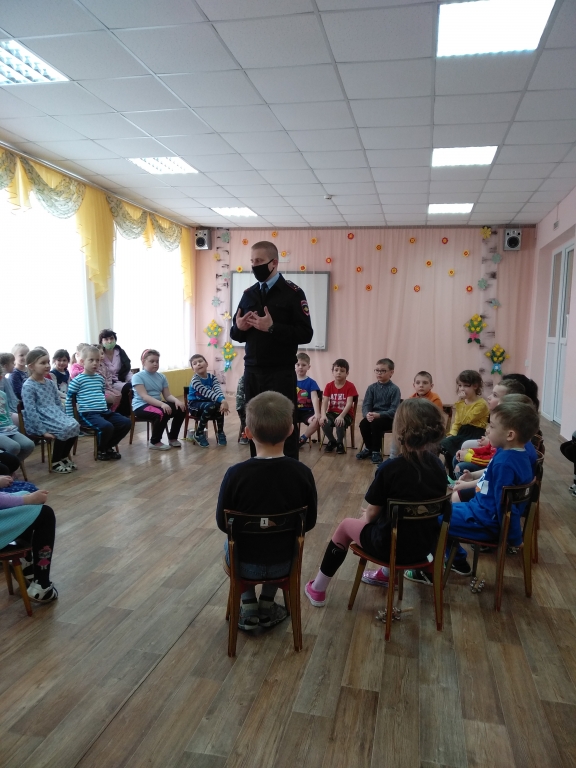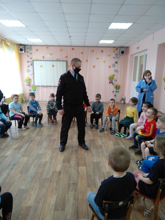 | 7 апреля в нашем саду состоялась встреча ребят старшего дошкольного возраста с инспектором ГИБДД – Медведевым Дмитрием Валерьевичем. Инспектор рассказал о правильном и безопасном поведении на проезжей части, объяснил дошкольникам, почему дети до 7 лет должны ездить в автомобиле в детском кресле, а также зачем нужны световозвращающие элементы на одежде. Воспитанники с большим интересом слушали инспектора ГИБДД и отвечали на вопросы. |
