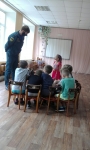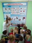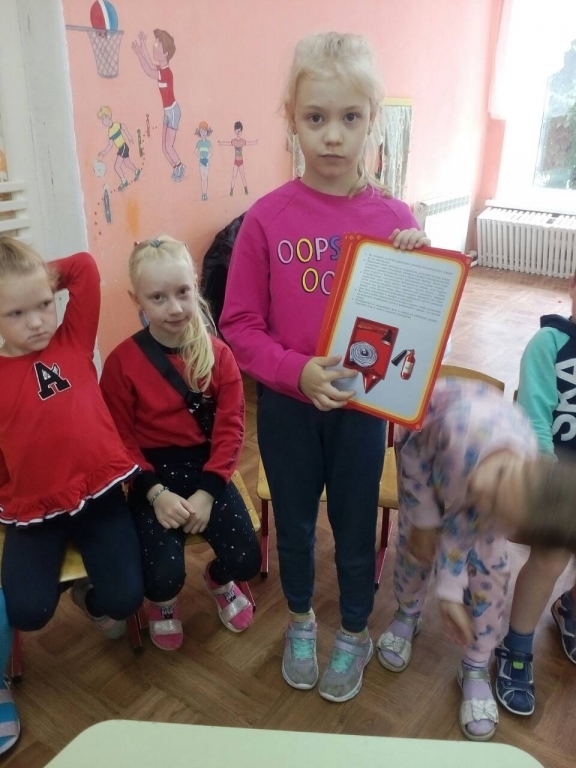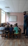 | Цель: Познакомить детей с правилами пожарной безопастности. Задачи: рассказать ребятам, когда огонь друг, когда враг; рассказать ребятам что нужно делать в чрезвычайной ситуации; Развивать творческое воображение; развивать интерес к художественной литературе; Занятие проходило в форме игры, был сюрпризный момент. В гости к ребятам пришел Мальчик Огонь, он загадывал загадки, учавствовал в танце с ребятами. С ребятами провел соревнование,"потушим огонь". В конце занятия ребята сделали из ладошек пожарную команду. |