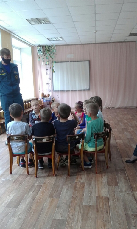 | 13 августа состоялась встреча детей подготовительной группы "Ромашка" с сотрудниками МЧС России. Проведено интересное, познавательное занятие "Правила пожарной безопастности". Дети активно учавствовали в беседе, отвечали на вопросы, отгадывали загадки и с удовольствие посмотрели короткометражный мультфильм "Правила пожарной безопастности". |