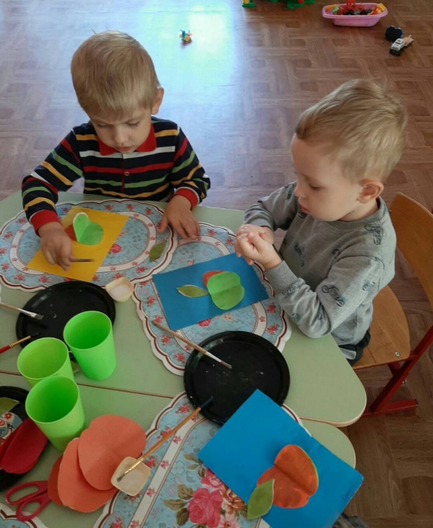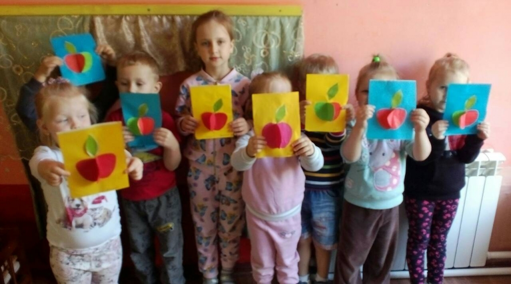 | 19 августа Яблочный Спас! Первый праздник урожая! С этого дня считается, что лето поворачивает на убыль! На группе "Непоседы" в этот день дети угощались яблоками и сделали аппликацию "Вкусное яблочко". Группа "Почемучки", Коллективная работа "Яблоки на тарелке"и аппликация "Большое яблоко". |
