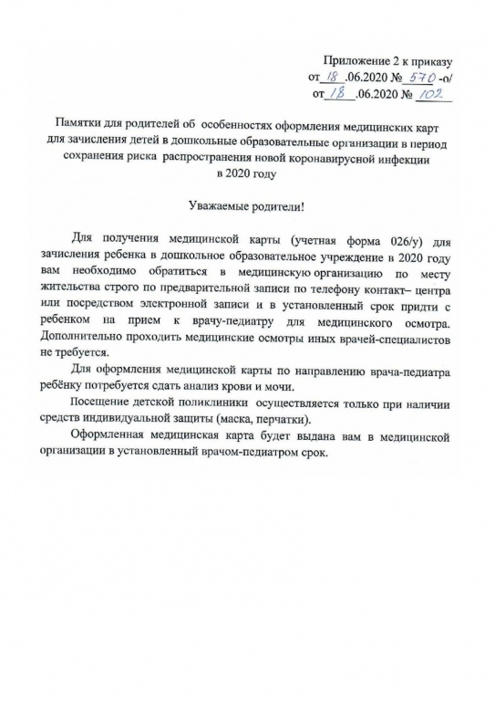 | Приказ.Порядок оформления медицинских карт. Порядок получения медицинских карт. Памятка для родителей. |