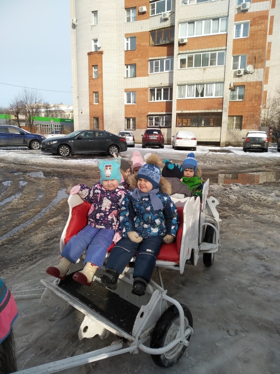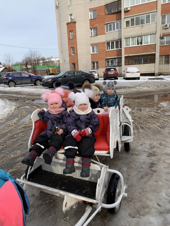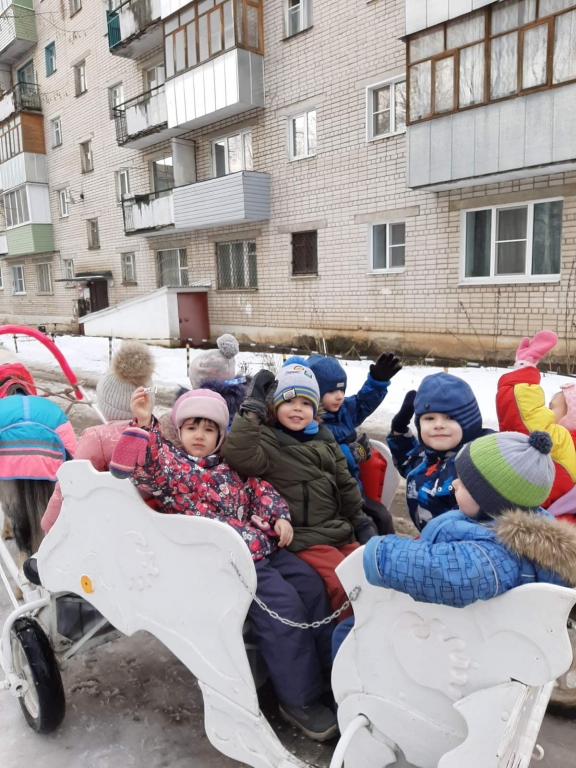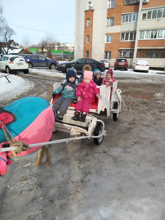 | На масленичной неделе прошло традиционное катание на лошадках и угощение блинами. Группа "Чебурашки" Группа "Улыбка" Группа "Почемучки" Дети старшей группы "Ромашки" посетили Музей Первого Совета и познакомились с традициями проведения Масленицы в Мещанской усадьбе, русским бытом. На подготовительной группе "Непоседы" прошло развлечение "Масленицу встречаем-Зиму провожаем!" |