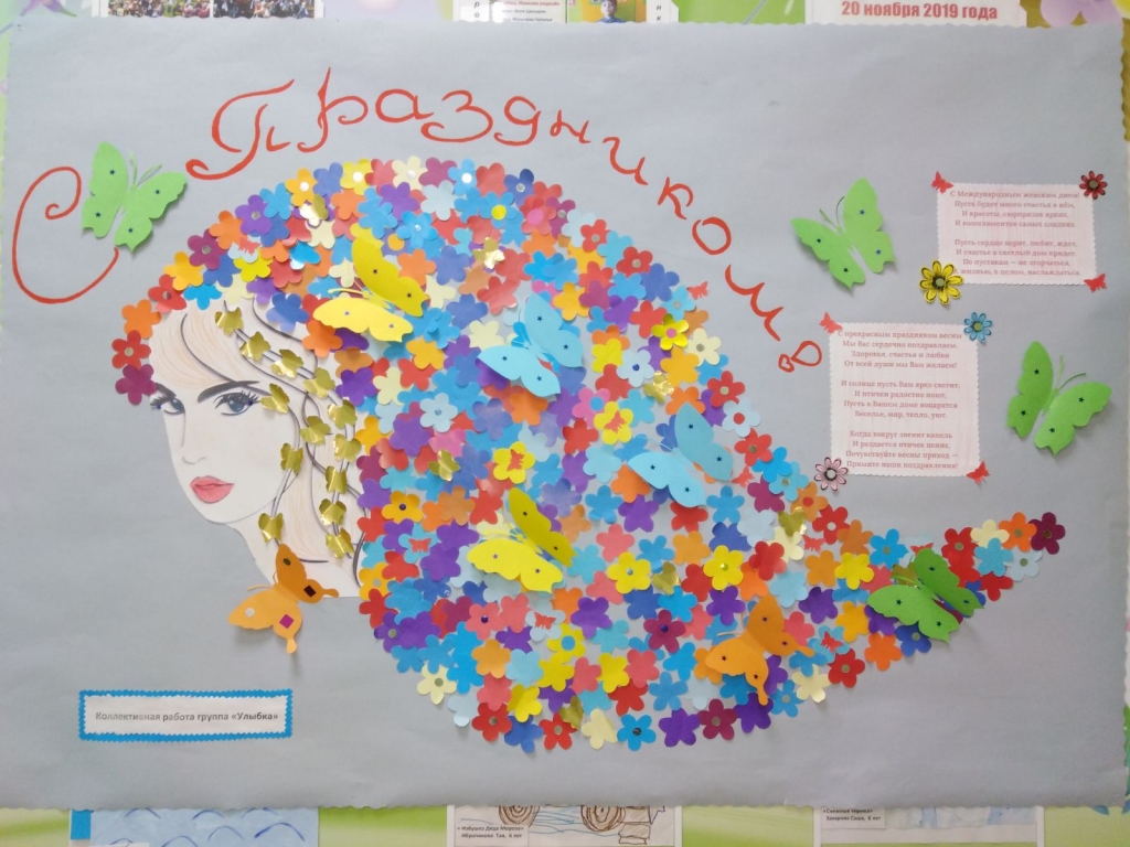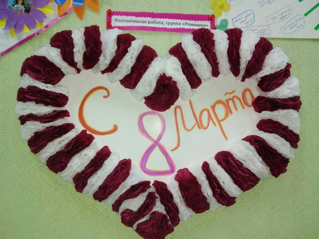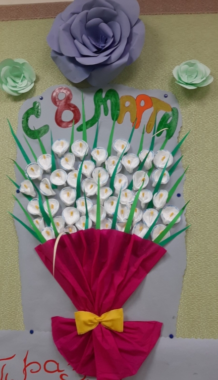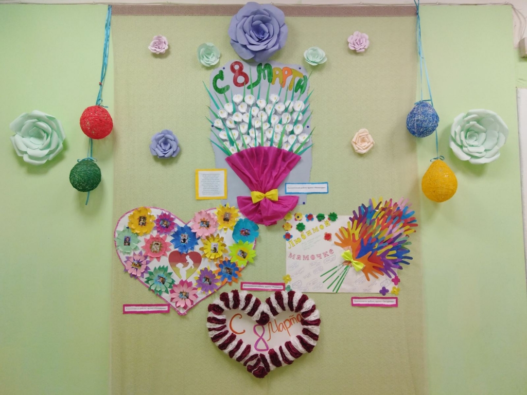 | Моя мамочка родная, Я люблю тебя без края! С 8 Марта поздравляю, Счастья я тебе желаю. Много света, доброты, Исполнения мечты, Радости на много лет. Тебя лучше в мире нет! Дети с воспитателями приготовили памятные подарки мамам на праздник 8 марта. Фойе оформлено праздничными газетами и поздравлениями. |