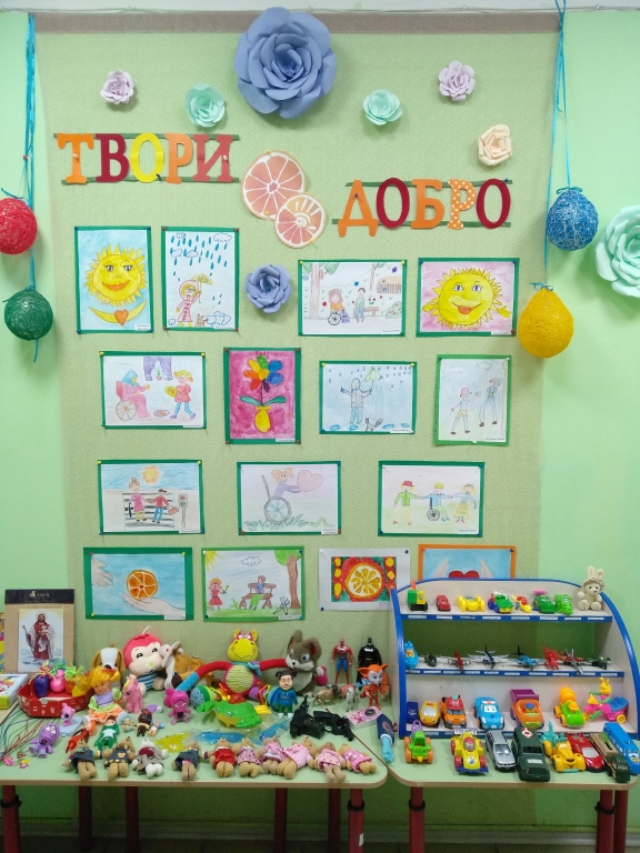 Наш детский сад принял активное участие в благотворительном марафоне С детьми проведены беседы «Что такое доброта?», «Они такие же, как мы!», Была оформлена выставка детских рисунков на тему: «Твори добро!» Для сбора добровольных пожертвований на группах были выставлены Апельсинометры и организована Ярмарка-распродажа «Мимо вы не проходите – больным детям помогите». |