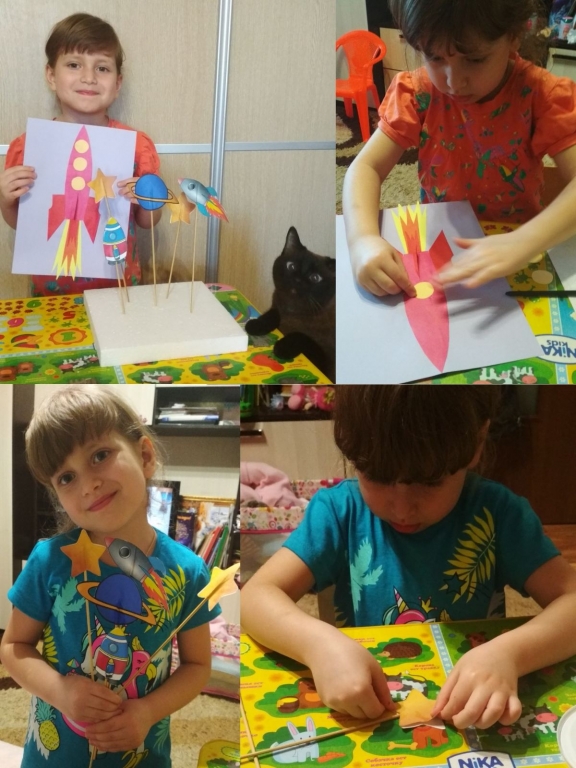 | Пока вся страна на карантине. Родители со своими детьми провели беседу и сделали творческую работу к празднику "День космонавтики". Группа "Почемучки": Группа "Улыбка": |