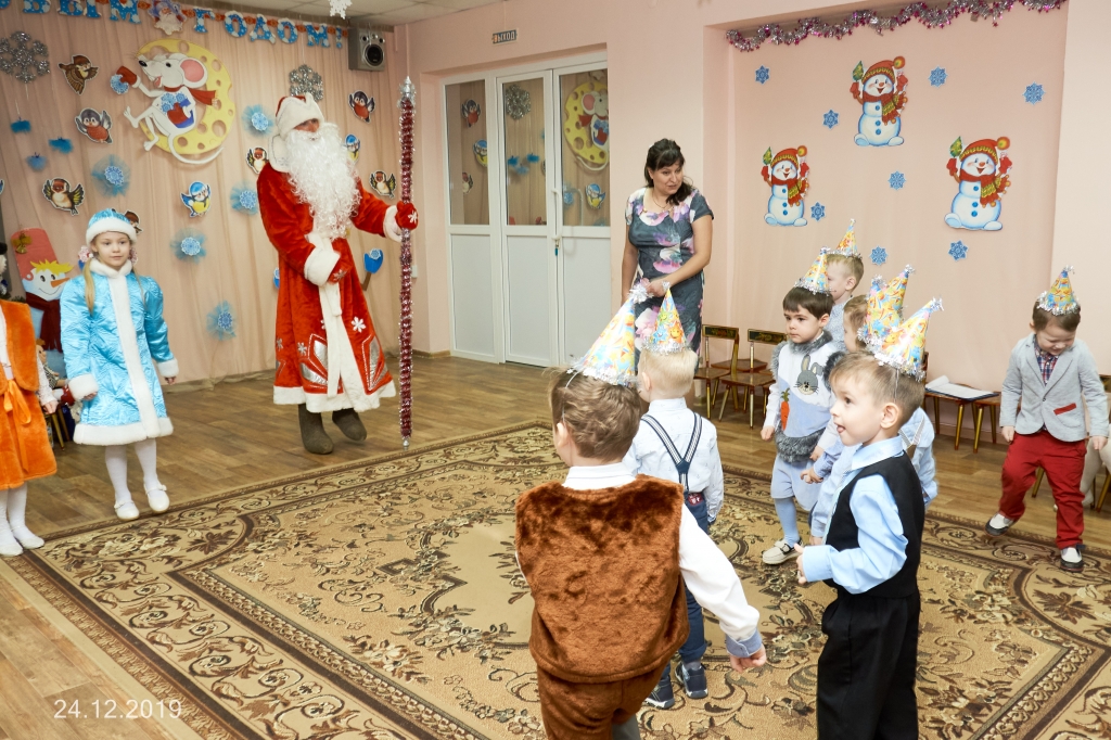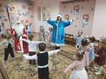 | Малыши группы "Чебурашка"с радостью играли с Дедом Морозом и Снегурочкой. Ребята группы "Улыбка"встречали Снегурочку потом в гости пришла Лиса, Заяц, Медведь и Птичка, и конечно встречали самого главного гостя Деда Мороза. На группу "Звездочки" к ребятам пришли в гости Золушка, Принц, Мальвина, Буратино, Шапокляк и конечно, Дед Мороз и Снегурочка. Утренник прошел весело, с песнями и танцами. На группу "Ромашки"и "Почемучки" к ребятам пришли Шапокляк, Дед мороз и Снегурочка. Утренник прошел весело, ребята рассказывали стихи, пели и танцевали. Ребята группы "Непоседы" встречались со сказочными героями: Лешим, Бабой Ягой,Черным Котом, что бы отпразновать Новый год с Дедом Морозом и Снегурочкой, ребятам помогал добрый волшебник. |